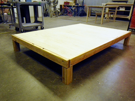 I made this from scrap 2×4’s and hardware laying around the shop. A pocket joint was created for the center support piece. The platform is 1/2” ply. It all breaks down and is assembled with one 1/2” wrench.